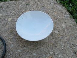 Now, that’s in broad daylight. (You’ll notice, if you compare the first of those two photos with the first of the next two, that there is perceptible blue color just from the UV coming out of the sky and causing the porcelain to fluoresce. Most of the blue is just the reflection of the sky, but the edge closest to the camera is reflecting clouds, and it’s still blue.)